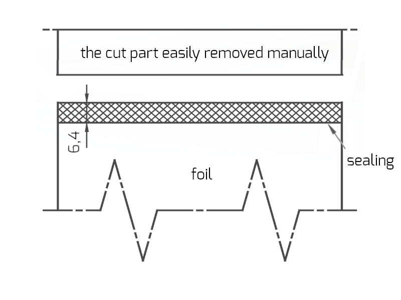 Może być stosowany do folii PE. Dla wszystkich innych rodzajów folii zaleca się próbkę. Folie aluminiowe nie mogą być cięte.